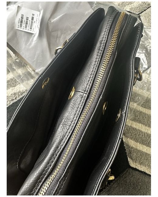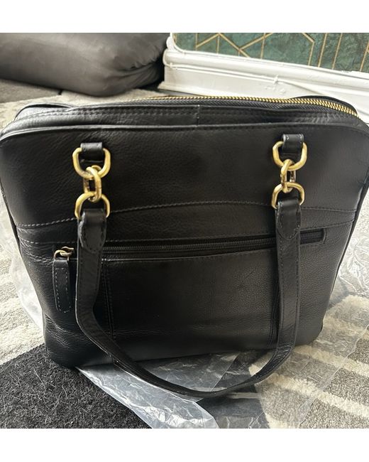 RRP: £99 Will be sent with original packaging • Black • Logo detail to front • Three external pockets • Three inside pockets • Zip fastening • Black lining • H: 24cm. W: 30cm. D: 12cm • Handle Height: 27cm • Leather