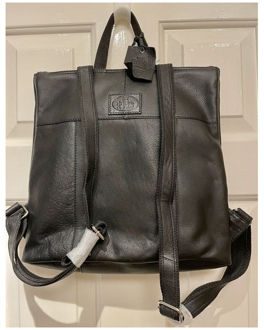 ROWALLAN - QUALITY BLACK LEATHER BACKPACK RRP £95 - NEW !. A really lovely backpack with style ! It is quite quirky and it’s looks are not boring like some . It has a front zipped pocket and a neat slightly oval zipped opening to the top . Nice and roomy inside with a phone pocket and a further zipped pocket . Fits a large iPad . Postage will be 2nd class signed for Please look at my many quality leather accessories