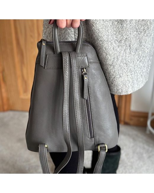 Women's Gray Grey Leather Backpack