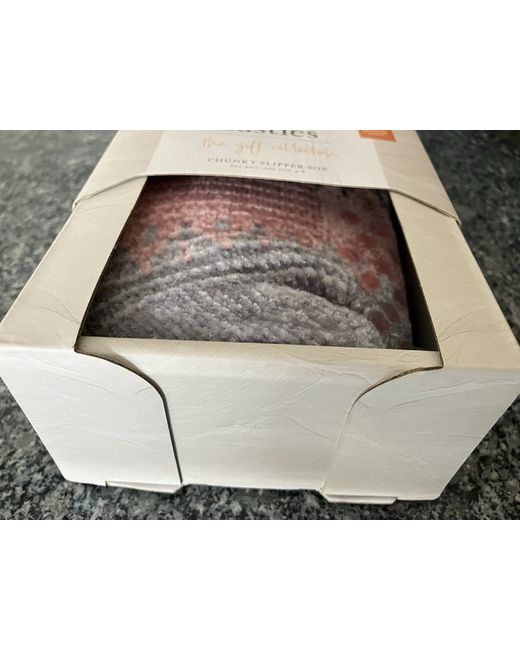 New box very slightly knocked. Colours grey pink and creamy white. Chunky slipper so x. One pair one size 4 -8.