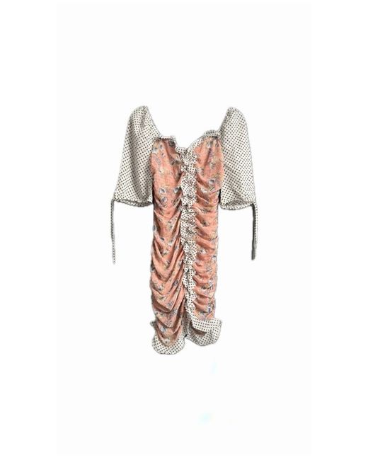 This is a new dress with tags by the brand Pretty Darling. It features a floral pattern in multicoloured hues, a zip closure, and a bodycon style. The dress has a half sleeve with a puff sleeve type, made of polyester material. It is a short length fishtail dress in size 6, suitable for party or cocktail occasions.