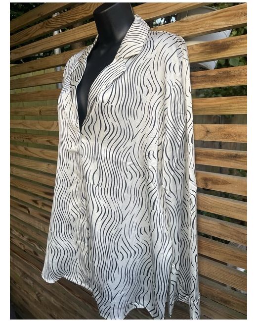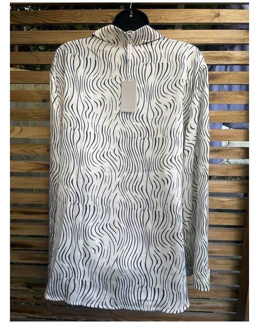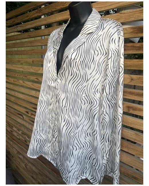 New with tags Relaxed fit blouse in abstract wave print. Flowy satin fabric, can be dressed up or down. No issues with I just missed the returns cut off. Size medium on there website is a 12/14