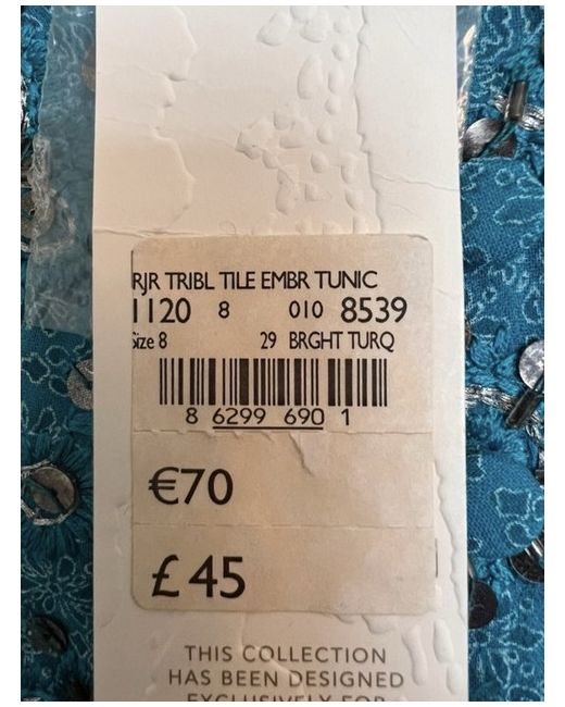 This turquoise John Rocha Tunic is the perfect addition to your holiday wardrobe. The flattering tunic style features 3/4 sleeves and is made from a lightweight viscose fabric, perfect for keeping cool whilst looking stylish. The garment is brand new with tags.