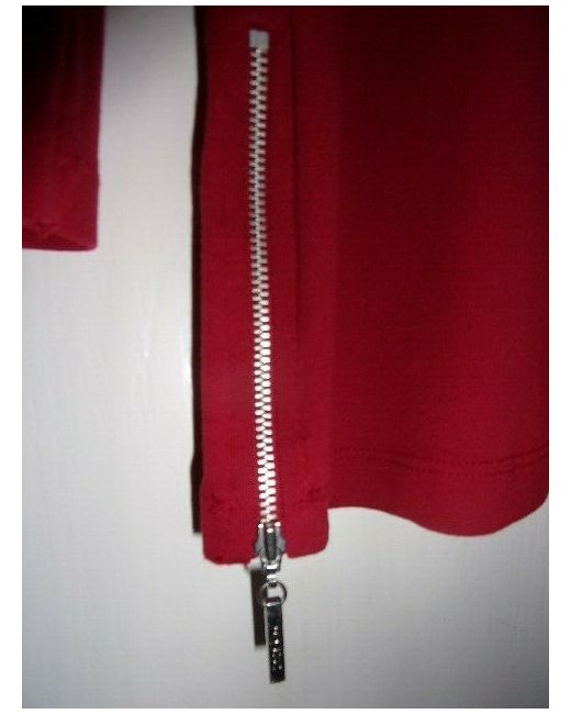 Women's Red Deep Top with FEATURE Cut-out Detailing to neckline. ZIP TRIMS Front hem