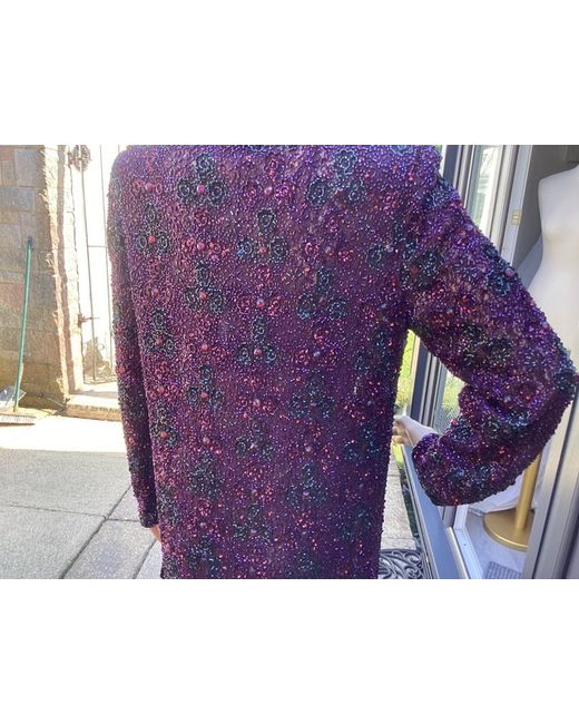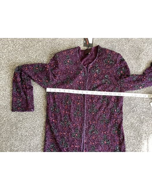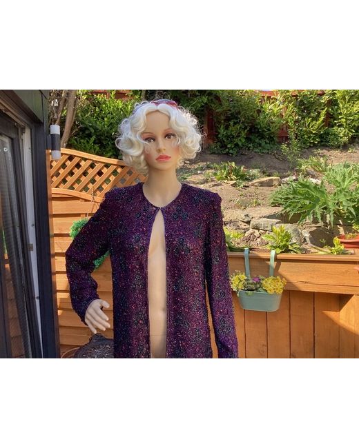 Experience the epitome of elegance with the Frank Usher beaded jacket, a stunning addition to any wardrobe. Tailored for a regular fit, this size small jacket boasts a vibrant purple mix that exudes sophistication and can effortlessly complement any outfit.The piece is distinguished by its intricate beaded accents, which add a touch of glamour and texture. Designed for women who appreciate a blend of classic style with a modern twist, this jacket is versatile enough for an evening out or a chic daytime ensemble. One shoulder pad does have slight material loss not sure why but does not affect the jacket it’s beautiful