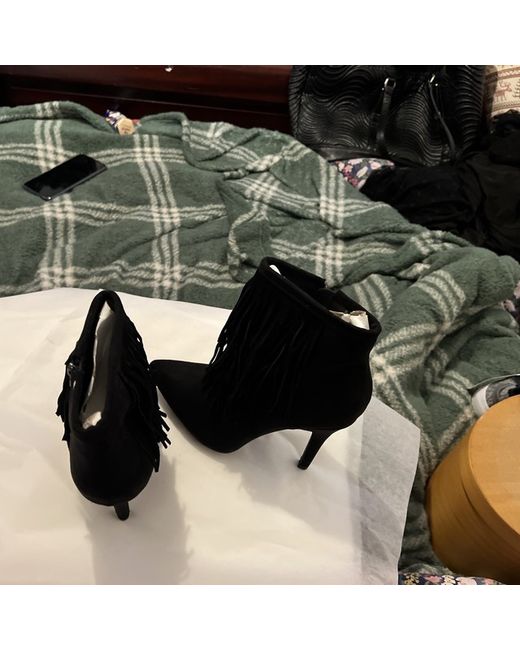 Step out in timeless style with these !Solid ladies' ancle boots, the epitome of classic chic. Fashioned from sumptuous black suede and finished with a sleek faux suede outsole, these boots are a versatile addition to any wardrobe. The ancle height and flat heel style make them perfect for day-long comfort, whether you're heading to the office or enjoying a casual weekend stroll. Available in UK size 5, these boots cater to both fashion and function, boasting a secure fit and a refined aesthetic. The ancle shaft style ensures a snug fit around the leg, while the solid black hue allows for effortless pairing with a variety of outfits. Embrace the sophistication that these ancle boots bring to any ensemble.