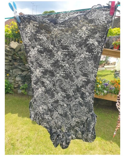 ***PRICEDROP **( Classy unusual mesh lacey design black and white,ruche neck top frilly edge bottom, button back neckline, to ruching,unusual lightweight soft loverly material, ideal travel as light ,loverly for most occasion 's or casual, size 8/10 stretchy ,loverly top and material