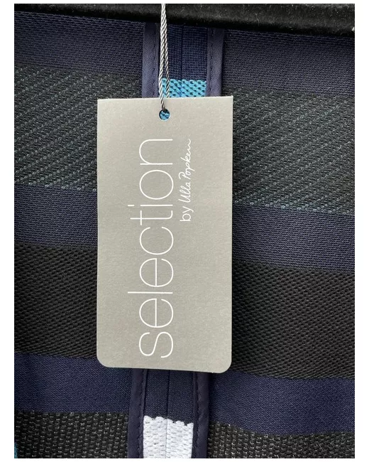 Selection by Ulla Popken Blue Striped Jacket. Handkerchief Drape Style. 32% Polyester, 27% Acrylic, 20% Cotton, 20% Viscose, And 1% Other. USA Plus Size 28/30 = UK 32/34.