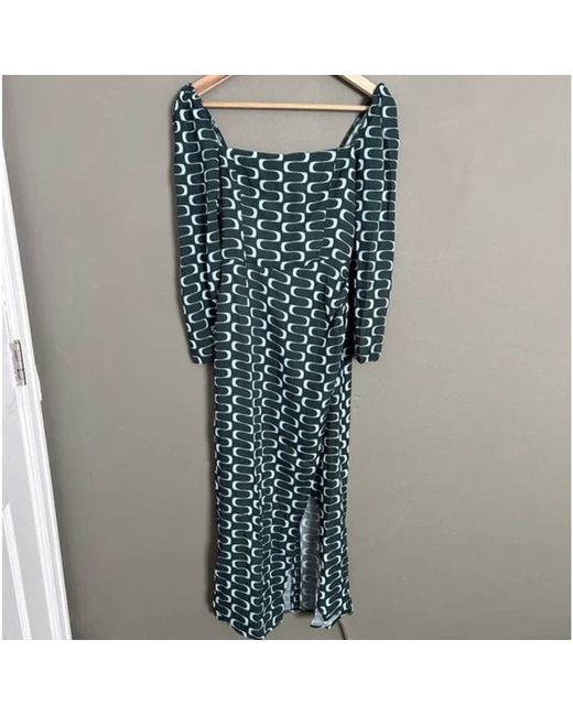 Reformation Hilda dress in green and blue Square neckline and side slit