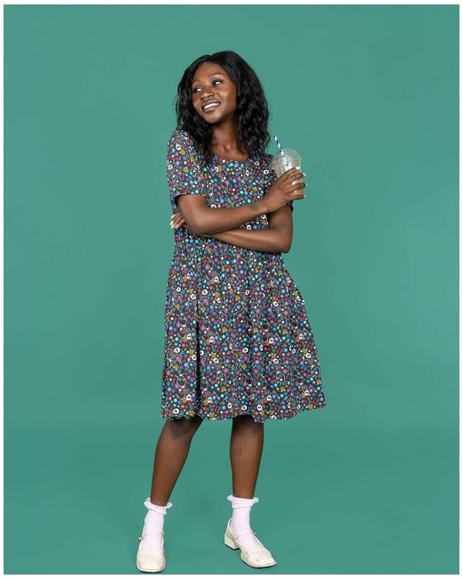 Get your spooky on all year round with the Boogie Bones Oversized Smock Dress! The oversized fit and fun skeleton print make this dress a must-have for any quirky and fun wardrobe. Boogie Bones print.