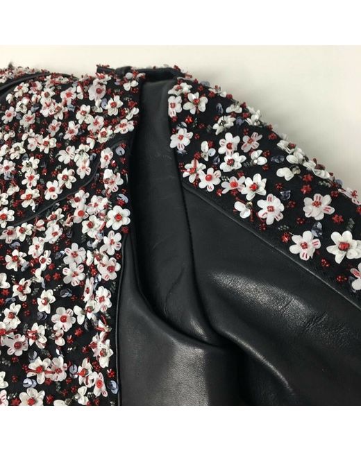 Add a touch of beautiful designer style to your wardrobe with this stylish biker jacket. The design features a biker style cut with a leather backing, notched lapels, and stunning sequin and glass floral details.