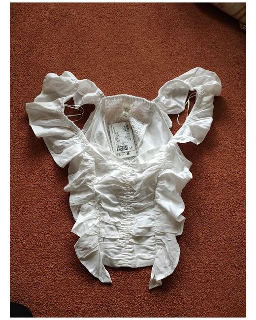 This stylish white top from H&M is a must-have for any fashion-forward woman. Its frilly design and cropped style make it perfect for summer wear, while the linen blend material ensures comfort and breathability. The sleeveless top is available in size S and is suitable for regular size types. The top is ideal for pairing with high-waisted jeans or skirts, and its white colour makes it easy to match with other items in your wardrobe. Whether you're dressing up for a night out or keeping it casual during the day, this top is a versatile addition to any outfit.