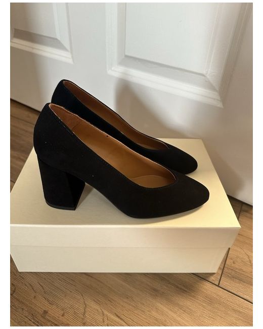 Tried on only Size-2 uk Black suede Leather lining 7,5 cm heel H Suede heel Boxed No refund