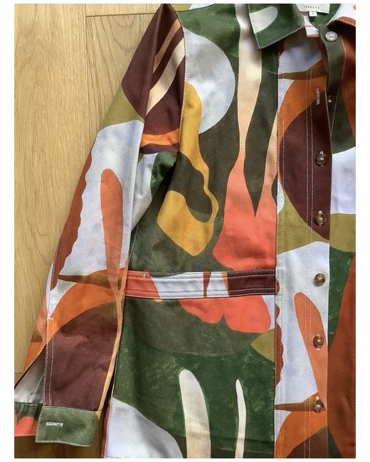Stunning colourful jacket . Pattern looks like painted washes. Will jacket by Rafael Uriegas pour Sezane. 2 big deep pockets, buttoned to fasten. Button on cuffs. Underarm to underarm 20.5 inch Length 28 inch From smoke and pet free house