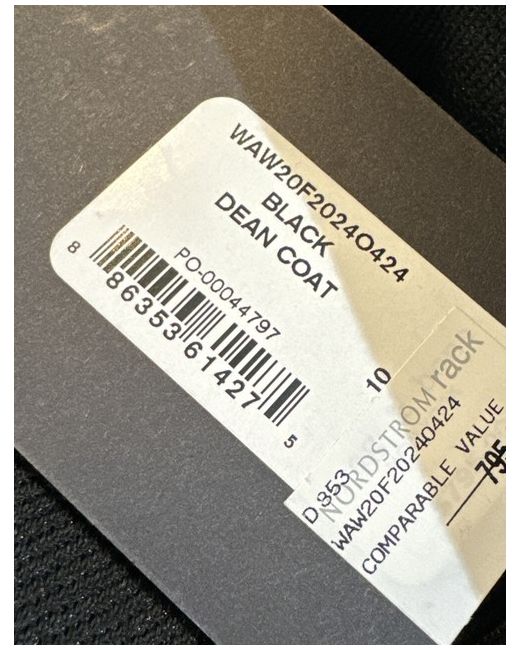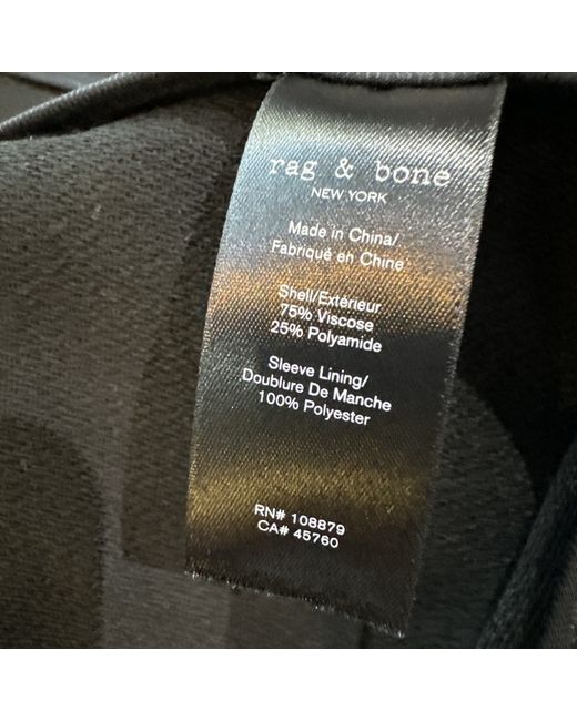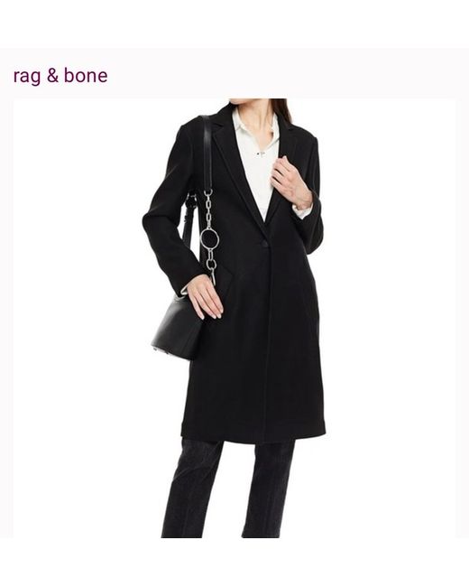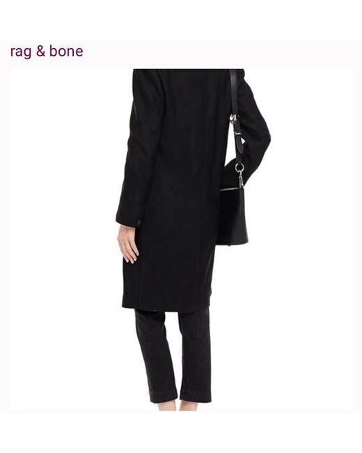 Rag & Bone black Dean coat. The coat boasts a sleek collared design, convenient pockets for your essentials, and is lightweight enough to layer without weighing you down. Whether heading to the office or enjoying a weekend stroll, the Dean Coat's understated elegance and classic silhouette make it a go-to piece for any occasion.