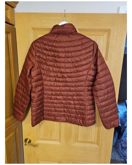This 32 Degrees jacket is a must-have for any woman's wardrobe. The ultra-lightweight design makes it perfect for on-the-go wear, while the quilted style adds a touch of sophistication to any outfit. The maroon colour is a beautiful and bold choice that is sure to turn heads. Crafted with high-quality polyester and insulated with premium down, this jacket is both stylish and practical. The size medium fits true to size, making it a great choice for any woman looking for a comfortable and flattering fit. Whether you're heading out on a chilly morning or need a stylish layer for your evening wear, this jacket is the perfect choice.