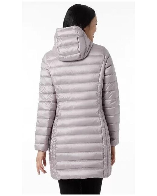 Material Composition Protected hood. Shell: 100% Nylon. Insulation: 90% Down / 10% Feathers. Length 85cm. Tumble dry low with tennis ball. Lining: 100% Nylon. Fasten all closures before washing.