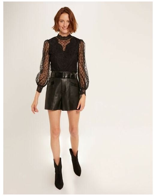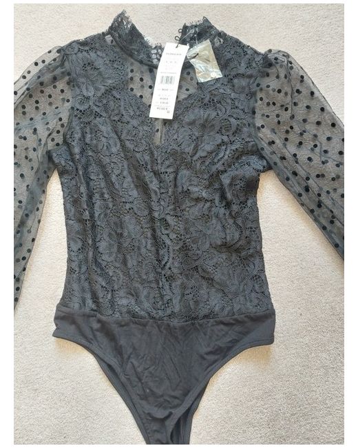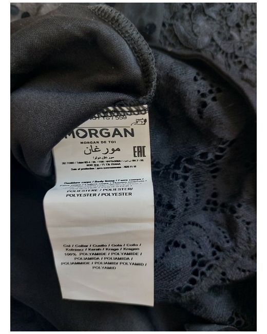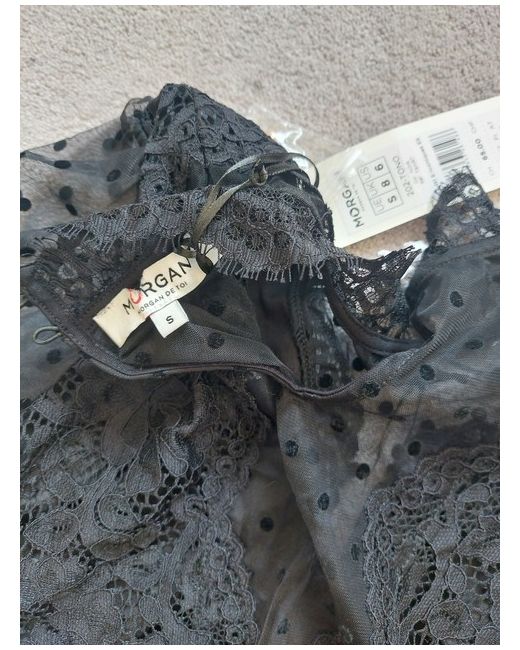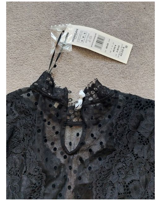 BNWT Morgan Black Lace Top S. Length 49cm, chest 78-90cm, shoulder 33cm, sleeve length 58cm, big stretch, body lining 100% polyester, collar 100% polyamide, lace 92% polyamide 8% elastane, Yoke 100%polyester, placket 95% viscose 5%elastane