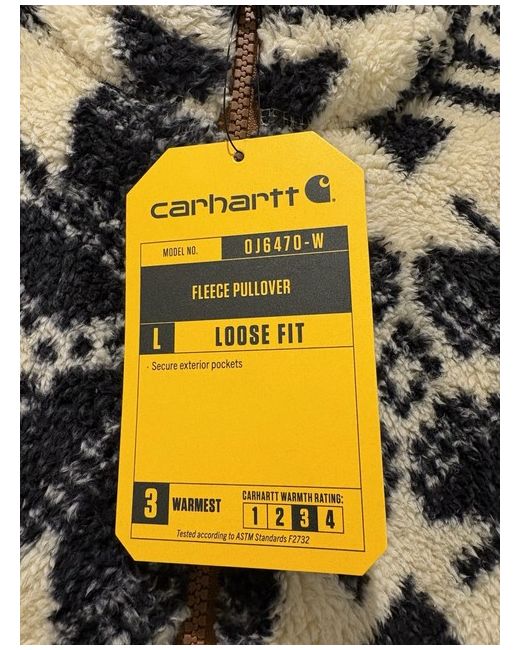 This Carhartt women's fleece half-zip pullover is a versatile addition to your activewear collection. The long-sleeved sweatshirt features a loose fit and is made of soft polyester fleece fabric, making it comfortable to wear during the colder months. The black and white pullover has a zip accent and is machine washable for easy care.