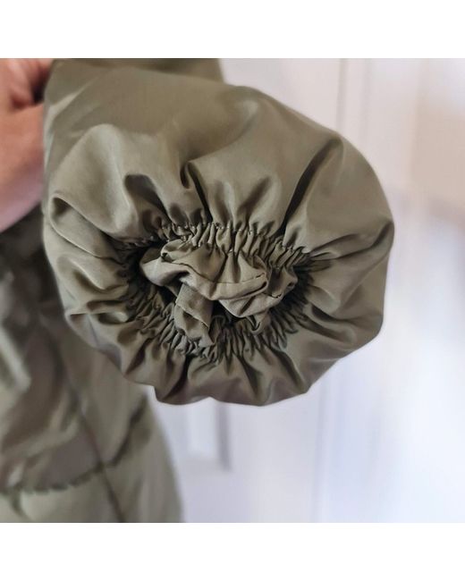 Simple design jacket made of quilted fabric. Large hood with stand up collar and buttons closure. Long sleeves. MACHINE WASH AT MAX.TEMP. 30 C - VERY MILD PROCESS. Fully functional and unused. Sold as seen in the images.