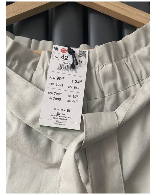 Elevate your wardrobe with these women's trousers from Reserved. Crafted from high-quality canvas fabric, these beige khakis come in a straight leg style with an elastic waist and belt for easy wear. Perfect for both casual and party/cocktail occasions, these trousers feature a size of XL and a waist size of 42 inches. The trousers also showcase the brand name and essential aspects such as type, size type, department, features, and colour. Ideal for any fashion-forward individual who wants to look stylish and feel comfortable in their clothing.