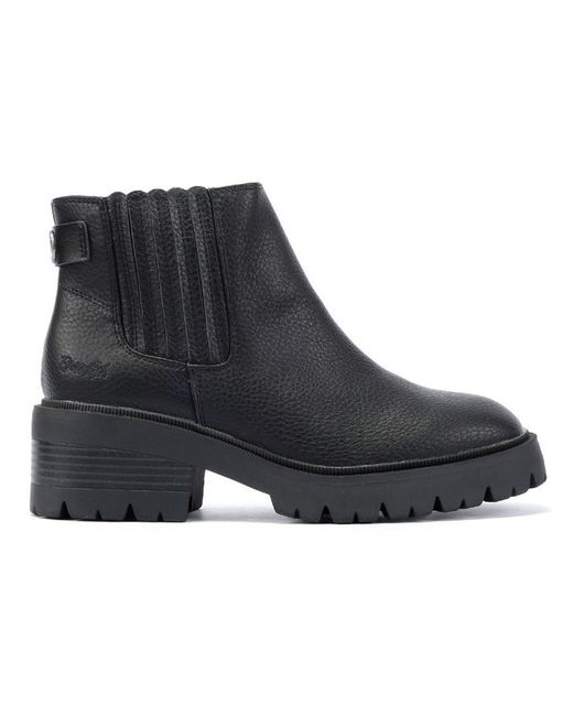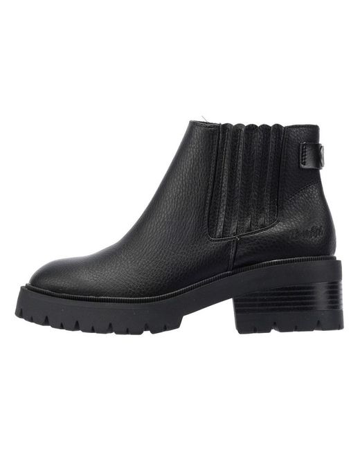 Step into style with these faux-leather upper boots featuring a sleek side stretch panel and inside zipper fastening. Colour: Black. Occasion: Casual. Insole Material: Synthetic. Outsole Material: Rubber.