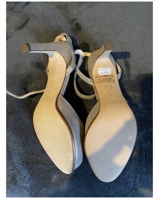 Elevate your shoe collection with these stunning Peter Kaiser heels. Crafted from high-quality gold leather, these strappy sandals are perfect for any occasion. The UK size 5 shoes feature a comfortable heel height, making them ideal for all-day wear. These women's shoes are a must-have for any fashion-forward individual. The Peter Kaiser brand is renowned for its exceptional quality, and these heels are no exception. Whether you're dressing up for a special event or adding a touch of glamour to your everyday attire, these shoes are sure to turn heads. These are ex-display and will have been tried on and may be scuffed. Comes with a dust bag. Box is a little tatty but still okay to use. RRP £149