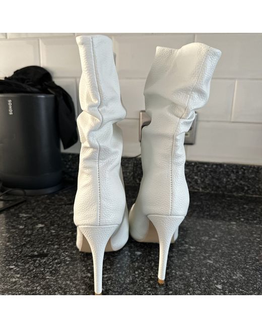 Made from faux leather with a stiletto heel and zip closure, these boots are perfect for adding a touch of glamour to your look. The peep toe design adds a modern twist to the classic boot style, making them a versatile and fashionable addition to any wardrobe.