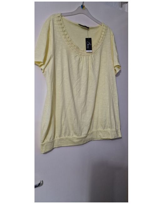 Brighten up your wardrobe with this lovely yellow top from Bon Marche. Perfect for any occasion, this basic tee features a round neckline, short sleeves, and a pullover closure for a comfortable fit.