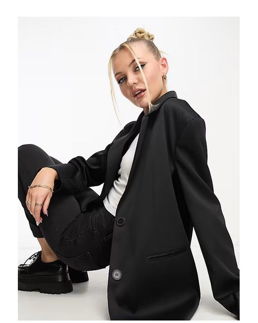 By COLLUSION. Black Double Breasted Longline Blazer. Oversized UK 14. it will upto a UK 18. pit to pit = 25". back seam length = 30".
