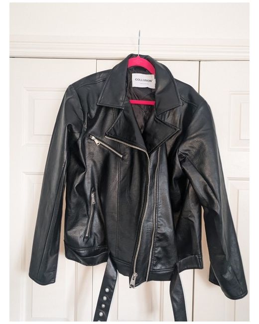 Brand new and unworn collusion faux leather biker jacket (didn't come with tags). the jacket is very oversized, will fit a 14-18 depending on desired fit.