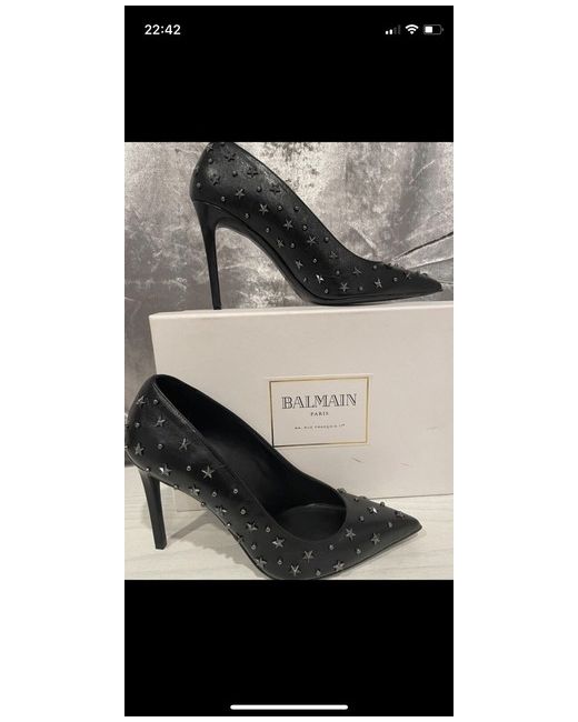 Elevate your style with these stunning Balmain heels. Crafted from high-quality leather, these court-style heels feature a sleek black colour that will complement any outfit. The high heel measures between 7.6-10 cm, adding a touch of sophistication to your look. These heels are designed for women with a UK shoe size of 6.5. They are perfect for formal occasions or to add a touch of glamour to your everyday look. The Balmain brand is synonymous with luxury and these heels are no exception. Don't miss out on the opportunity to add these stylish heels to your collection. RRP: £763