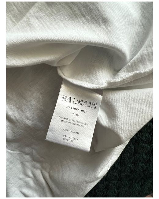 Balmain Paris Shoulder Button Gold Logo T Shirt - White - M