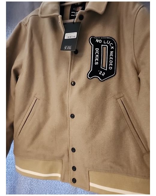 The Dickies varsity jacket is a beige wool jacket in a size small, designed as a unisex adults' garment. The varsity style gives it a classic and sporty look, making it a versatile outerwear option for both men and women. The Dickies branding adds a touch of authenticity to the jacket, making it a stylish choice for those looking for a blend of comfort and vintage-inspired fashion. Brand new with tags Unwanted christmas present Uk bidders