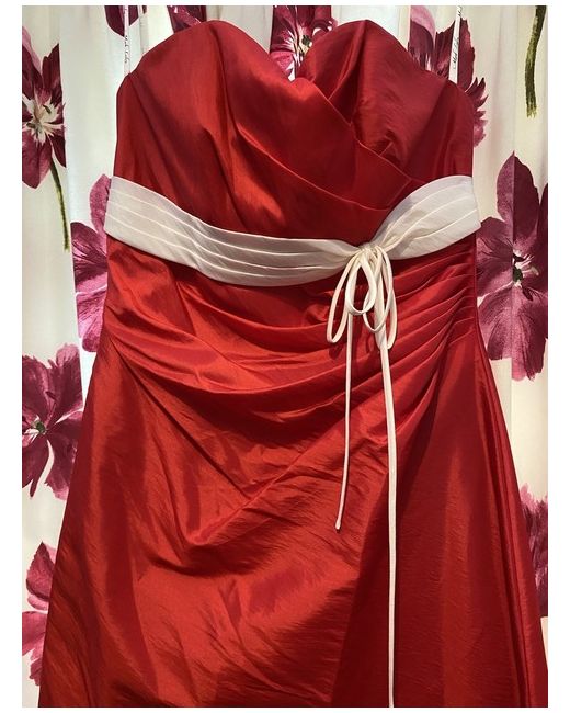The elegant style with side pleats is very flattering and sleeveless design make it perfect for a wedding or party/cocktail occasion. The dress is size 16 and features a long hemline that flows elegantly with every step you take.