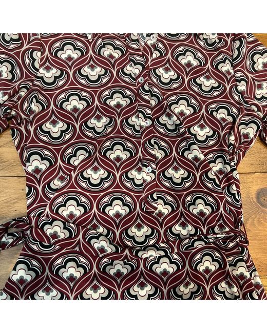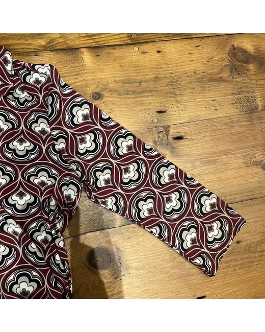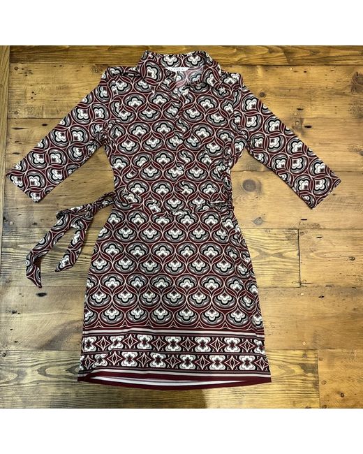 Women's Red BNWT Midi Button-Down Geometric Print Burgundy Dress S