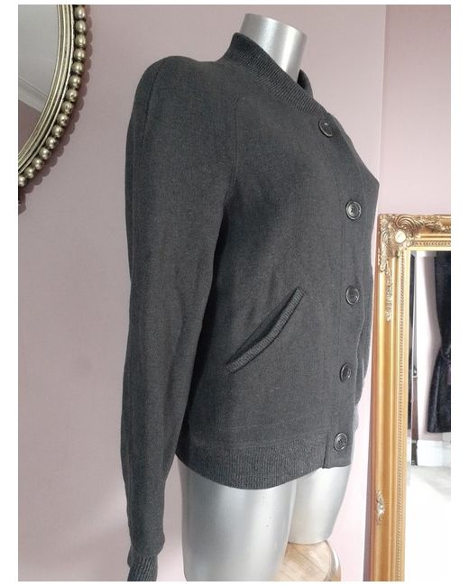 Nice jacket with pockets, grey with some lighter speckles in the material, measures 40 inch bust ,22 inch long , underarm to cuff 18 inch . Unlined . A slight knit feel .