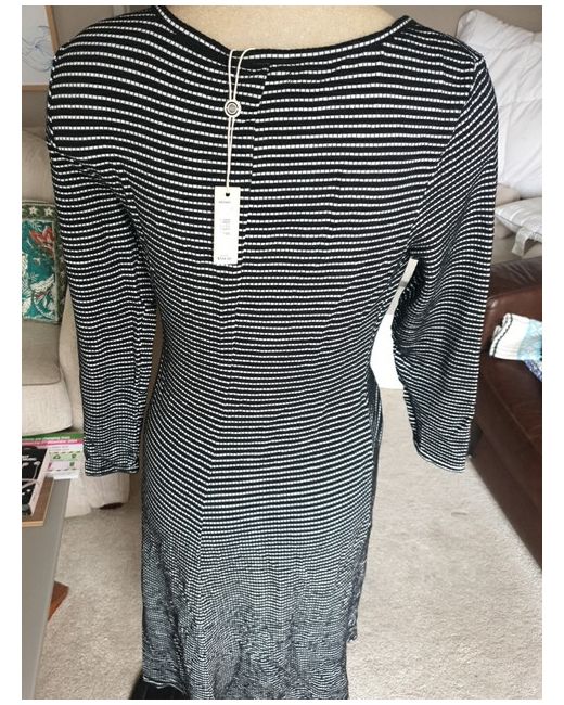 This stylish Max Studio dress, designed by Max Mara, is perfect for any occasion. The dress features a stunning horizontal stripes pattern in black and white, which gives it a classic and timeless look. The long sleeves and round neckline provide comfort and elegance, while the fit and flare style flatters the figure. The knee-length dress is made for women in size M, with a regular size type. It is ideal for those who love the Max brand and want to add a touch of sophistication to their wardrobe. Perfect for any event, this dress is a must-have for any fashion-conscious woman.