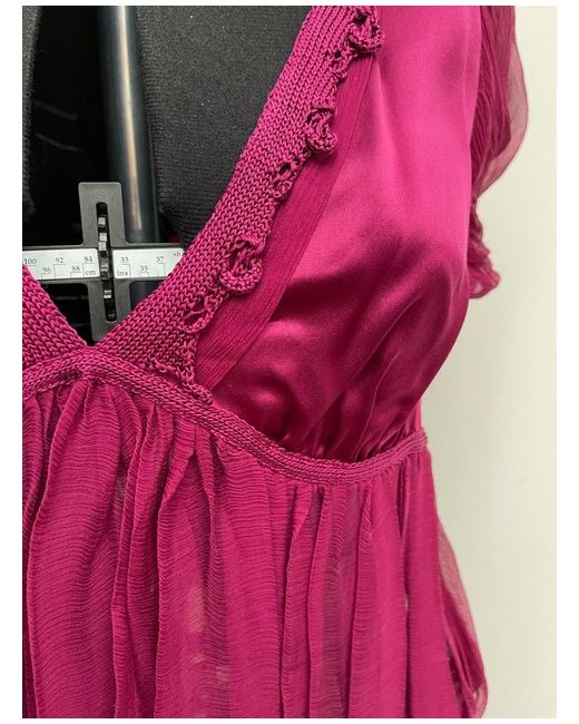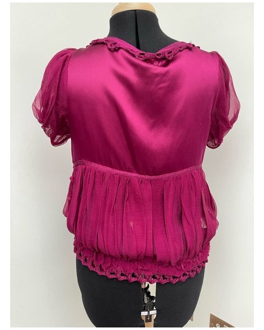 Women's Pink MaxStudio Magenta Silk VNeck Blouse L