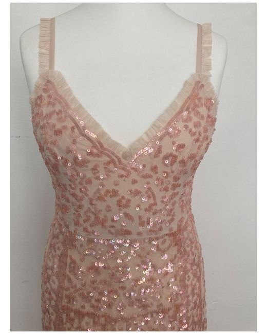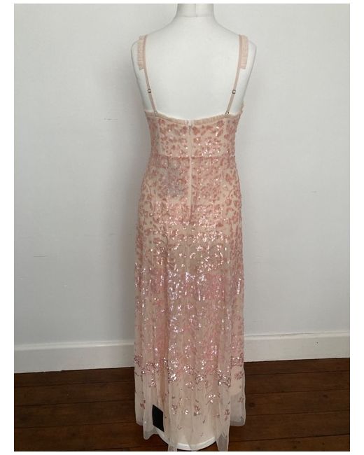 UK size 14 (US10 EU42). NEEDLE & THREAD EXCLUSIVE | Patchwork Sequin Cami Gown in pink. An ethereal piece to team with simple accessories for maximum style points. Patchwork sequin cami gown. A stunning sequinned gown by Needle & Thread.
