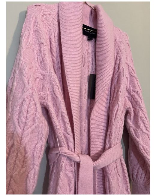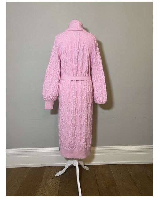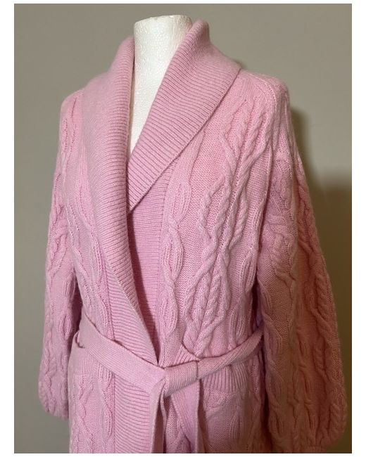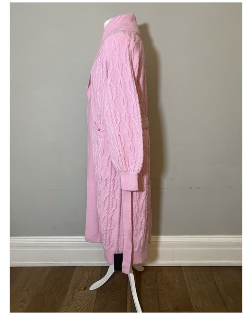 Women's Pink Cable Knit Cardigan M Midi Length Coatigan