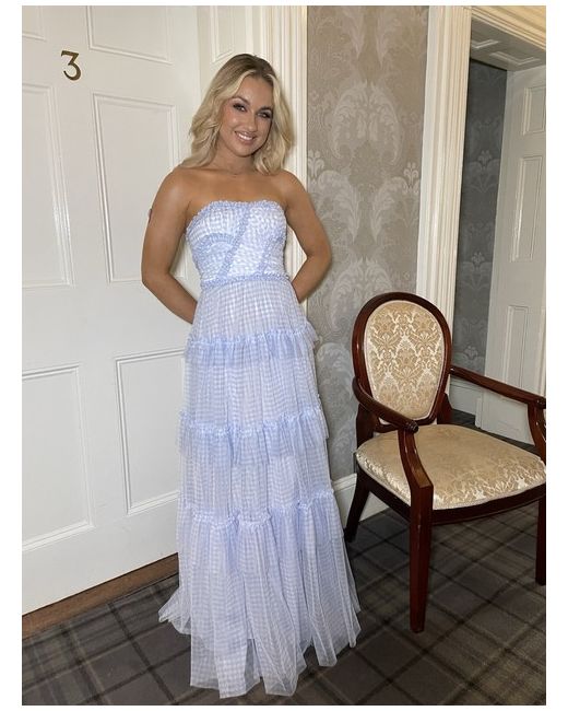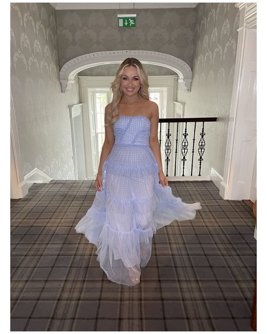 This stunning Needle & Thread dress in a beautiful shade of blue is perfect for any formal occasion. The sleeveless fit and flare style is designed to flatter and the long dress length adds an elegant touch. The dress features a grey wolf character that adds a unique touch to the overall look. The dress is made for women in size 6 and is suitable for summer and spring seasons. It is perfect for weddings, parties, or cocktail events. The dress is brand new and never been worn.