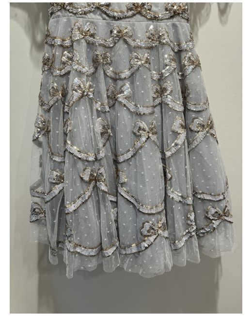 - Bow sequin-embellished ruffled tulle mini dress brand new 👗 - UK sz 6 - Round neck, Kisses embroidery, bow sequin embellishments, ruffled trims, partially lined Concealed zip fastening at back