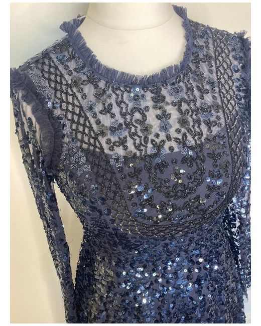 Size UK10 US6. BNWT Needle & Thread Victorian wreath long sleeve gown. Beautiful for a formal occasion or ball. Long dress in dark navy. shoulder to hemline 143cm. waist 73cm (has a bit of give).