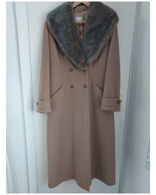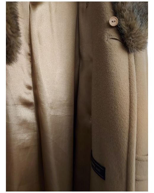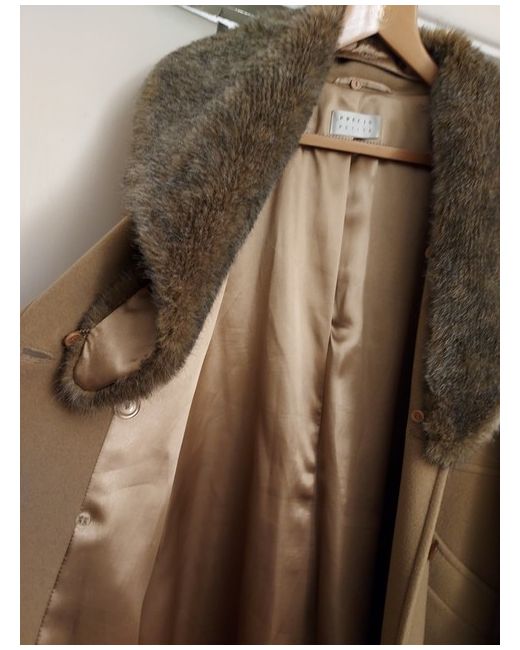 This Precis petit coat in size 14 features a long overcoat style with a faux fur collar that can be removed.