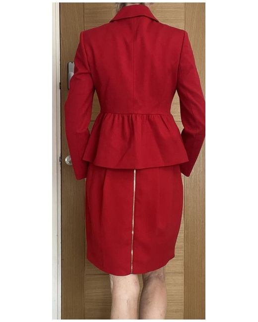 This women's red skirt suit in size 10 - (size 8 in the label but it is a generous 8 )is the perfect outfit for any formal occasion. The set includes a skirt and jacket, both in a stunning shade of red that is sure to make you stand out from the crowd. The suit is made by Precis, a brand known for its high-quality clothing. Whether you're attending a wedding, party, or business event, this suit will make you look and feel confident. The skirt has a classic cut that flatters the figure, while the jacket is tailored to perfection. The suit is new without tags, ensuring that it is in pristine condition. Buy now and add a touch of elegance to your wardrobe. Skirt features a full length gold zip down its back .