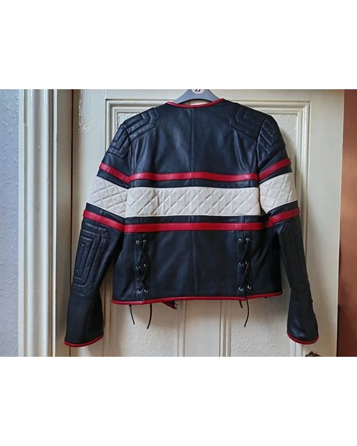 The Belstaff women's leather jacket is a stylish and versatile addition to any wardrobe. This short bomber jacket features a full zip closure and is crafted from the softest high-quality black leather. The lining is made from a luxurious blend of viscose and polyester, providing both comfort and durability. The jacket is designed for a regular fit in size medium, making it suitable for everyday wear. With its classic Racing-red and cream' design and superior craftsmanship, this jacket is a timeless piece that can be dressed up or down for any occasion.