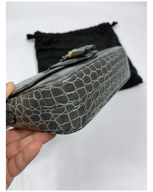 Women's Gray Croc Effect Leather Tassle Medium Grey Crossbody Bag Rrp 1445