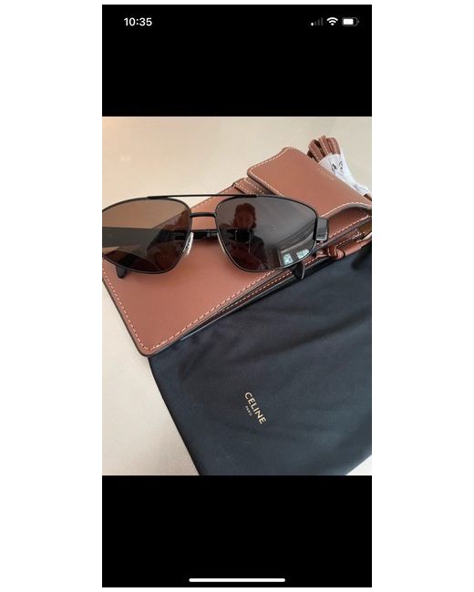 Elevate your style with these stunning CELINE sunglasses. The triomphe design is a must-have for any fashion-forward woman. The black metal frame and brown lenses make for a chic and timeless look that pairs well with any outfit. These sunglasses are perfect for any occasion, whether it be a day out with friends or a formal event. The brand's attention to detail is evident in the high-quality construction and attention to detail. These sunglasses are perfect for women who value both fashion and function. Add these CELINE sunglasses to your collection today and step out in style. Only selling as they don’t suit me. Beautiful glasses