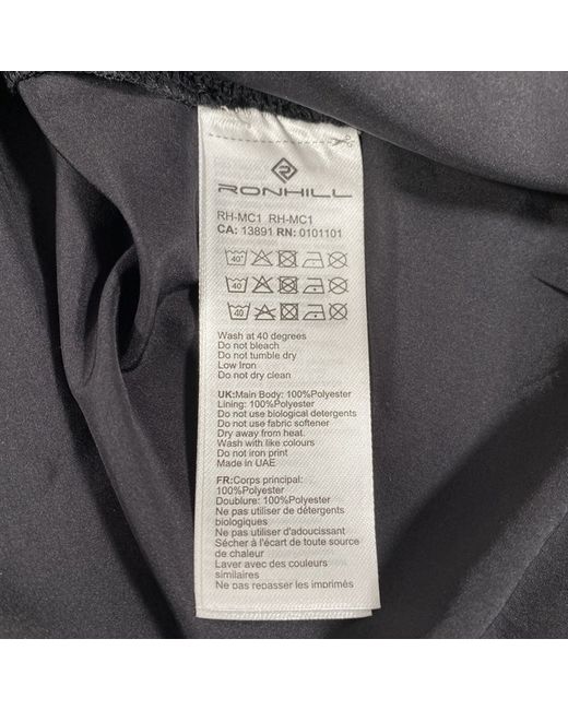 Size 12 Measures 20” pit to pit Back length 27” This RONHILL Ladies Core Wind Shower Proof Jacket in size 16 is designed for women who enjoy cycling and running. Made from 100% polyester, the lightweight black windbreaker features a zip closure and is suitable for sports activities like running and jogging. With a focus on performance, this jacket offers showerproof protection and is ideal for outdoor workouts. Its sleek design and practical features make it a stylish and functional addition to any active woman's wardrobe. This jacket is made in the United Arab Emirates and carries the trusted Ronhill brand name.